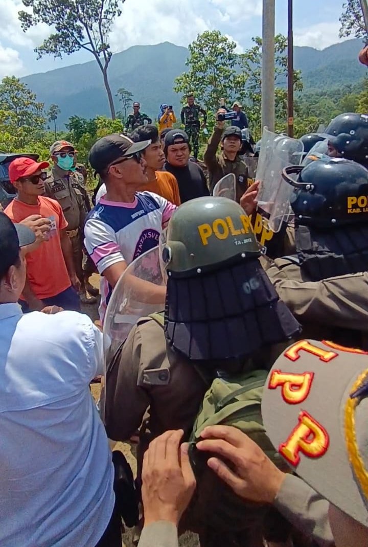 Puluhan warga atas nama keluarga besar Mangade To Magi berupaya menghadang kegiatan pembersihan lahan. Namun upayanya gagal. Pembersihan lahan tetap dilakukan.