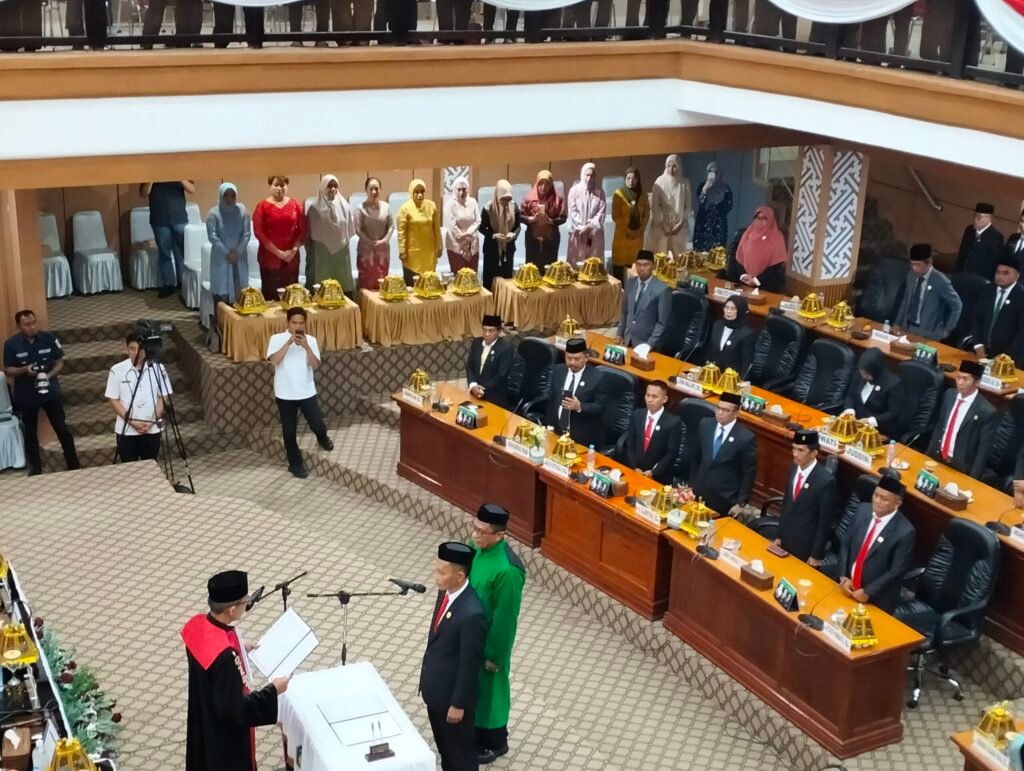 Pelantikan Jihadin Peruge berlangsung di Ruang Paripurna DPRD Lutim, Rabu, (25/06/25). Ketua Pengadilan Negeri Malili, Uwais Qarni yang memimpin pengambilan sumpah.