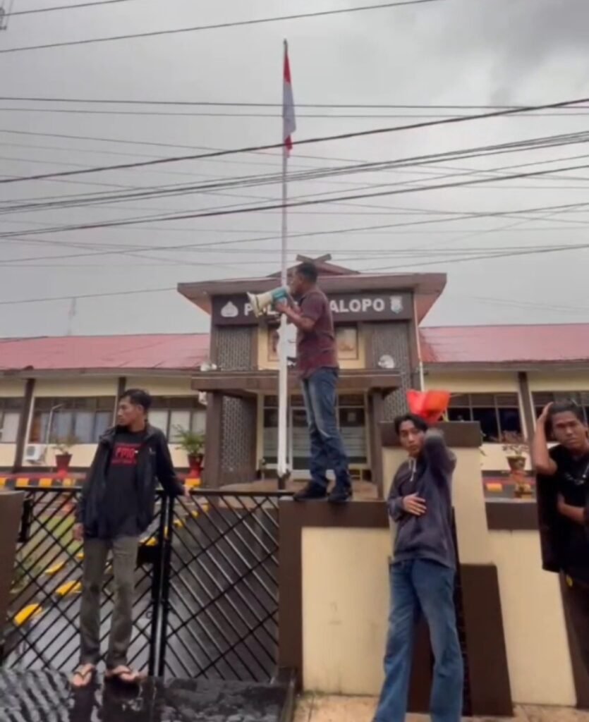 Mahasiswa Unanda Palopo menggelar aksi Demonstrasi di Polres Palopo, Jumat,23 Mei 2025.