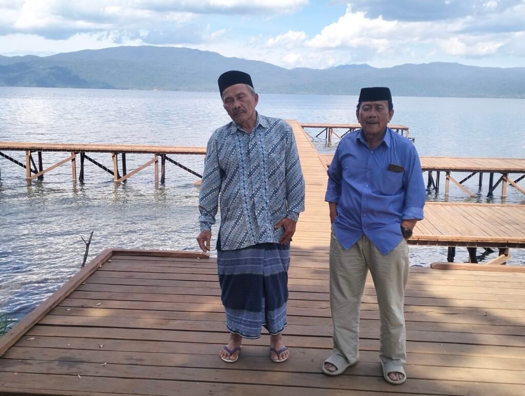 Tokoh Masyarakat Asli Sorowako, Abutar Ranggo (kanan) bersama Dahlan To Makkajareng (kiri) berada di Pantai Impian (salah satu aset yang diklaim Pemdes Sorowako), Sabtu, (10/01/2026)