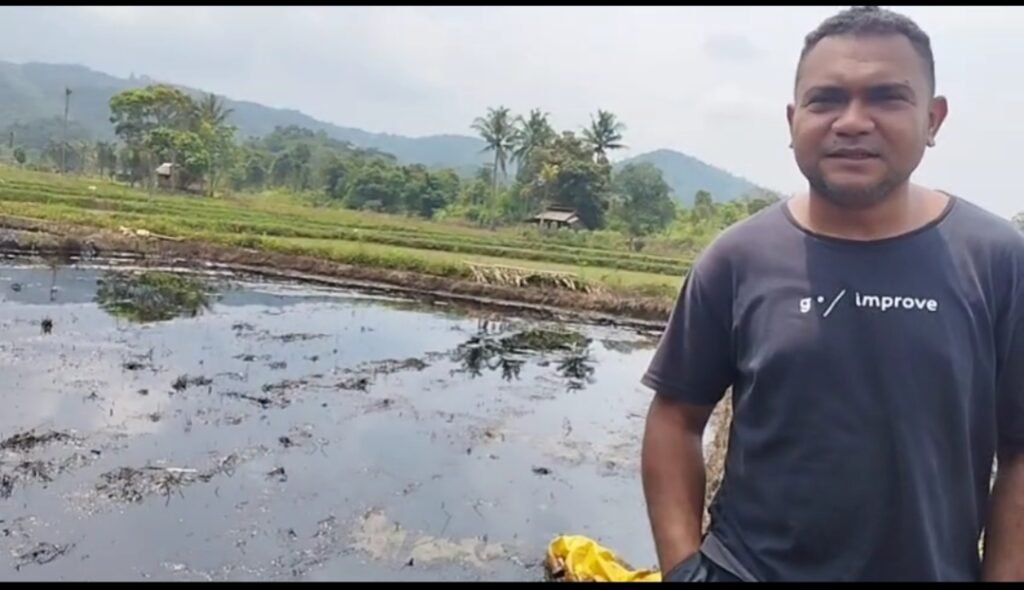 campuran minyak yang mengancam tanaman. Bukan hanya sawah, ancaman juga mengintai sumber air bersih warga. Kondisi ini tidak hanya mengganggu kehidupan sehari-hari, tetapi juga menimbulkan kebingungan warga Lioka dan sekitarnya akan aktivitas pertanian dan kondisi kesehatan mereka.